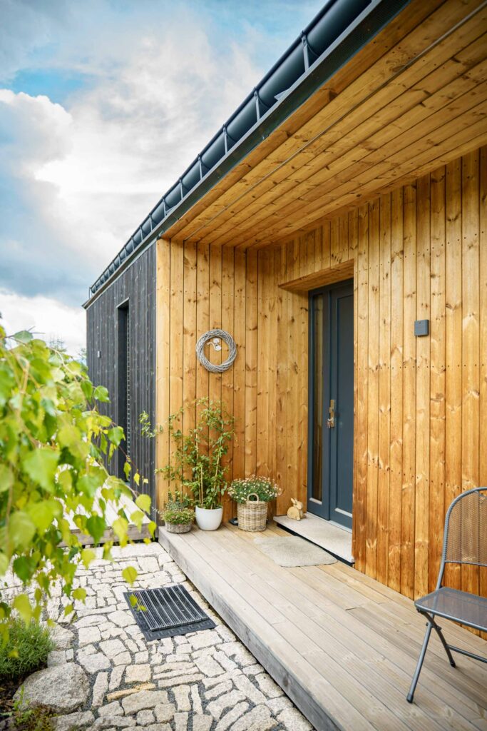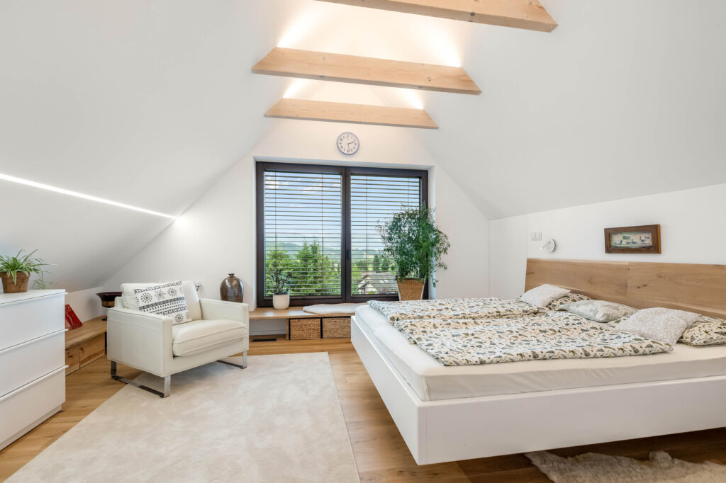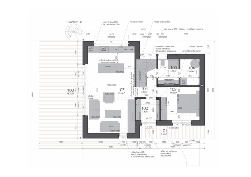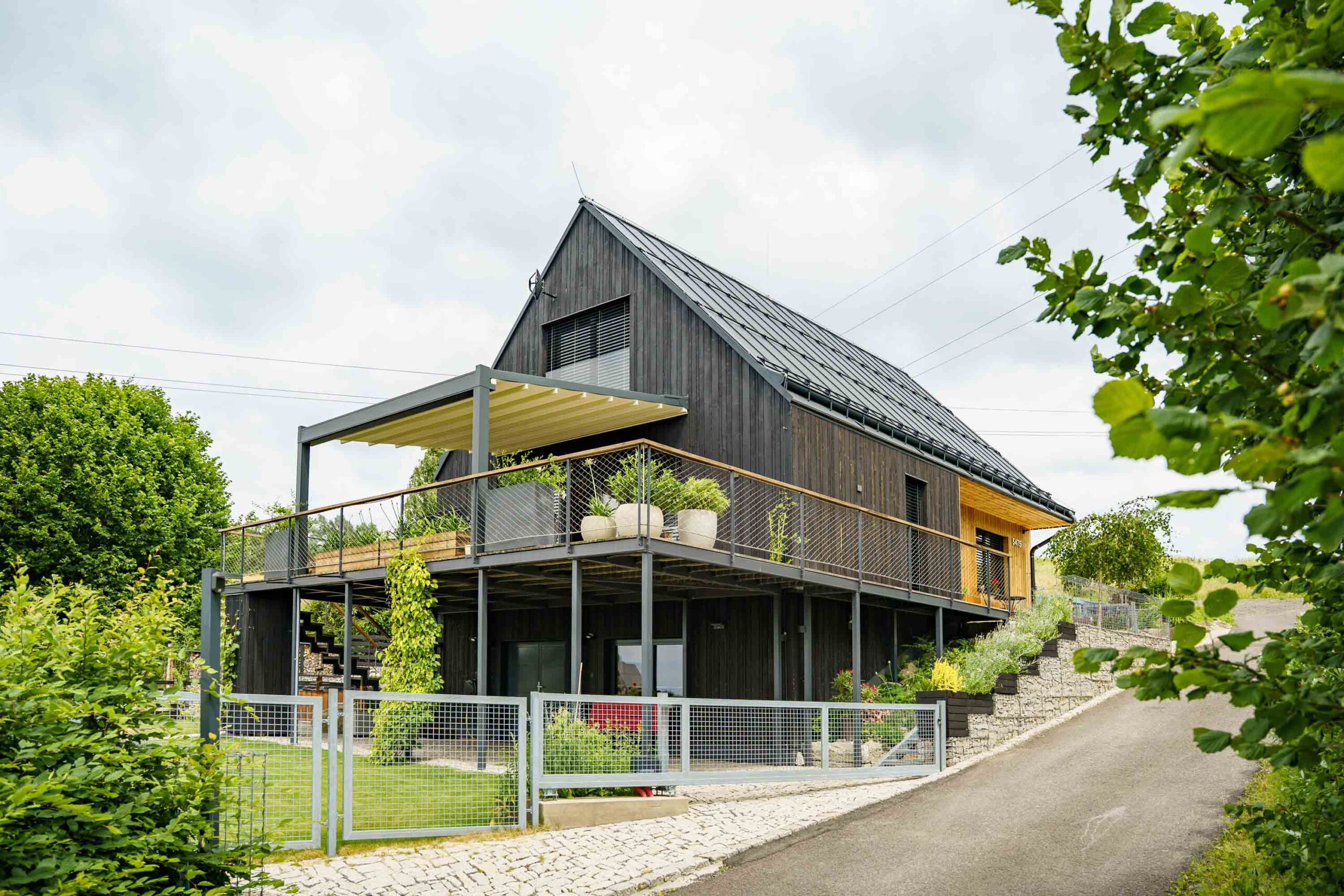 Moderní dřevostavba v energeticky pasivním standardu pro pohodlné bydlení manželského páru v seniorském věku.