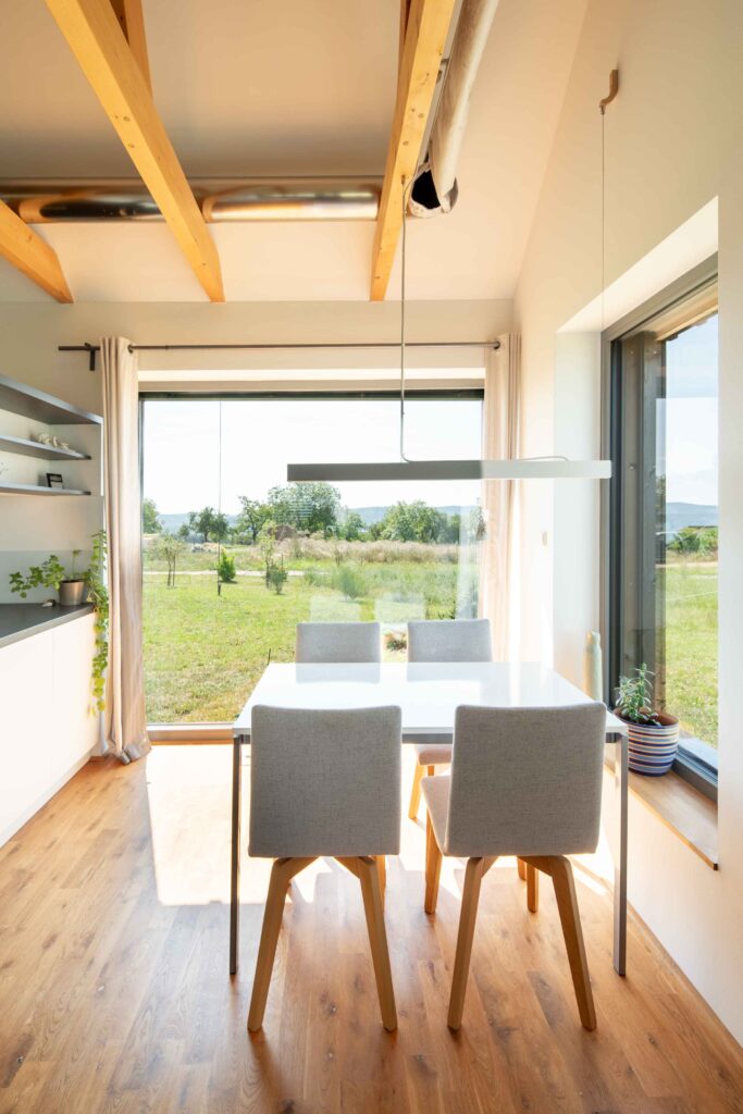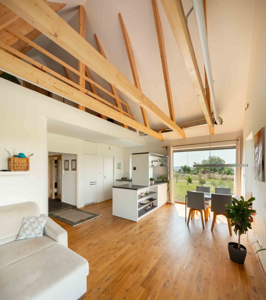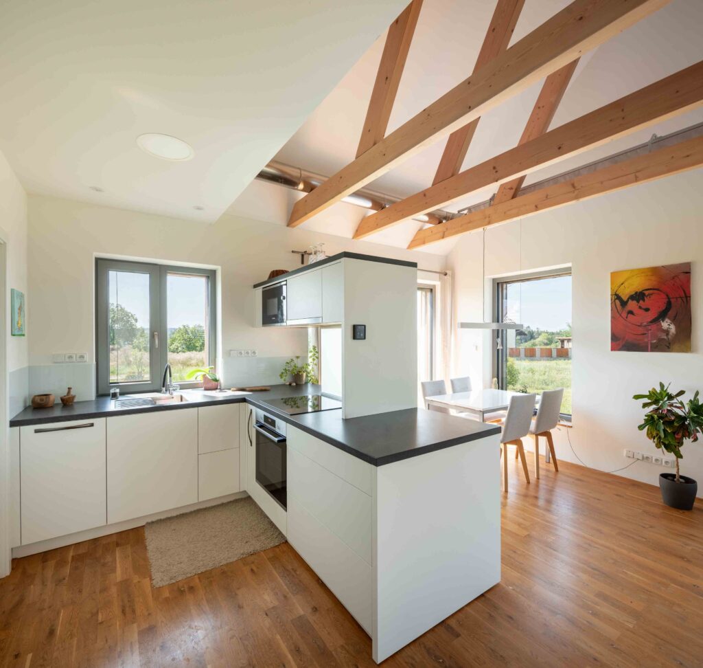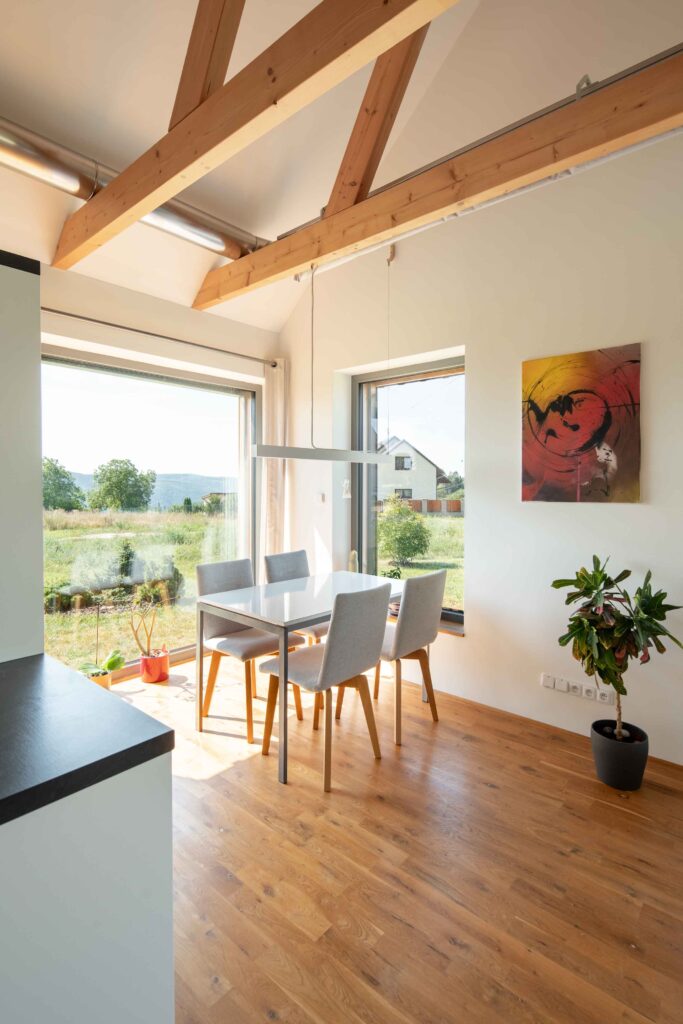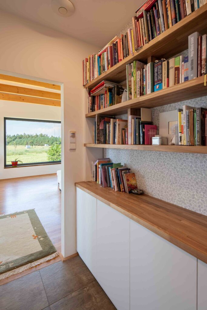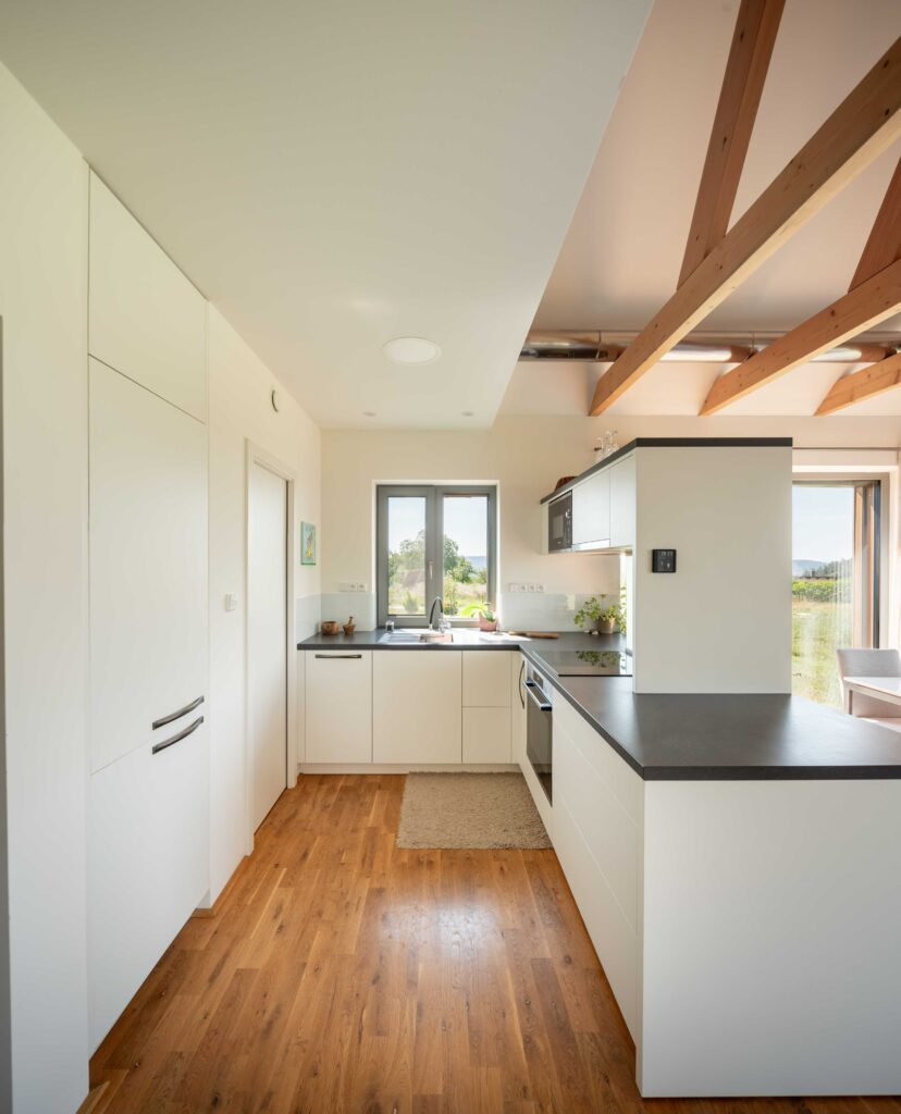 Na Křivoklátsku vyrostl domov, který dokazuje, že i na menší ploše lze vytvořit pohodlné a zdravé bydlení v souladu s přírodou. Interiér je dokonale přizpůsoben potřebám dvou lidí, s galerií připravenou pro návštěvy dětí a multifunkčním nábytkem na míru. Chytré technologie, jako je větrání s rekuperací, tepelné čerpadlo a fotovoltaika, zajišťují zdravé vnitřní prostředí a nízké náklady na provoz.