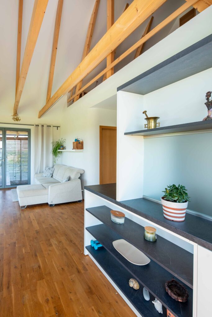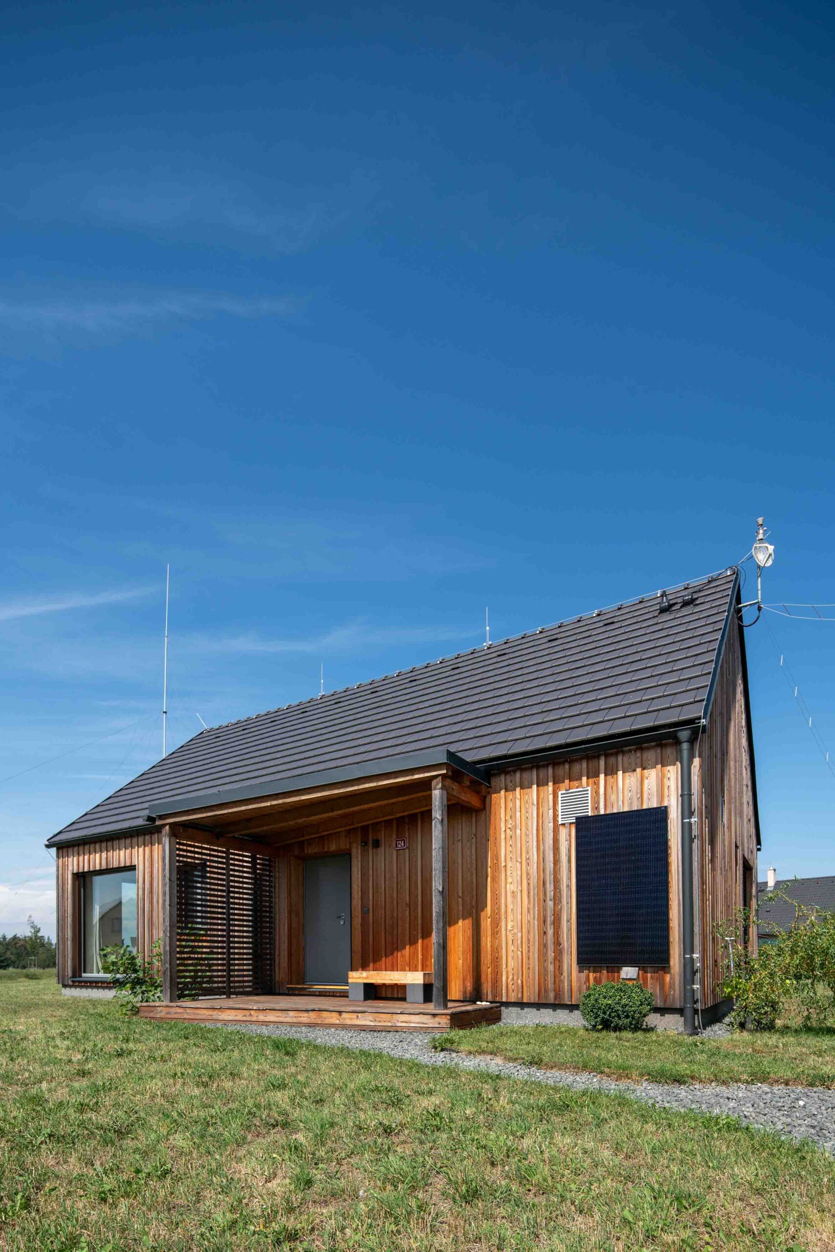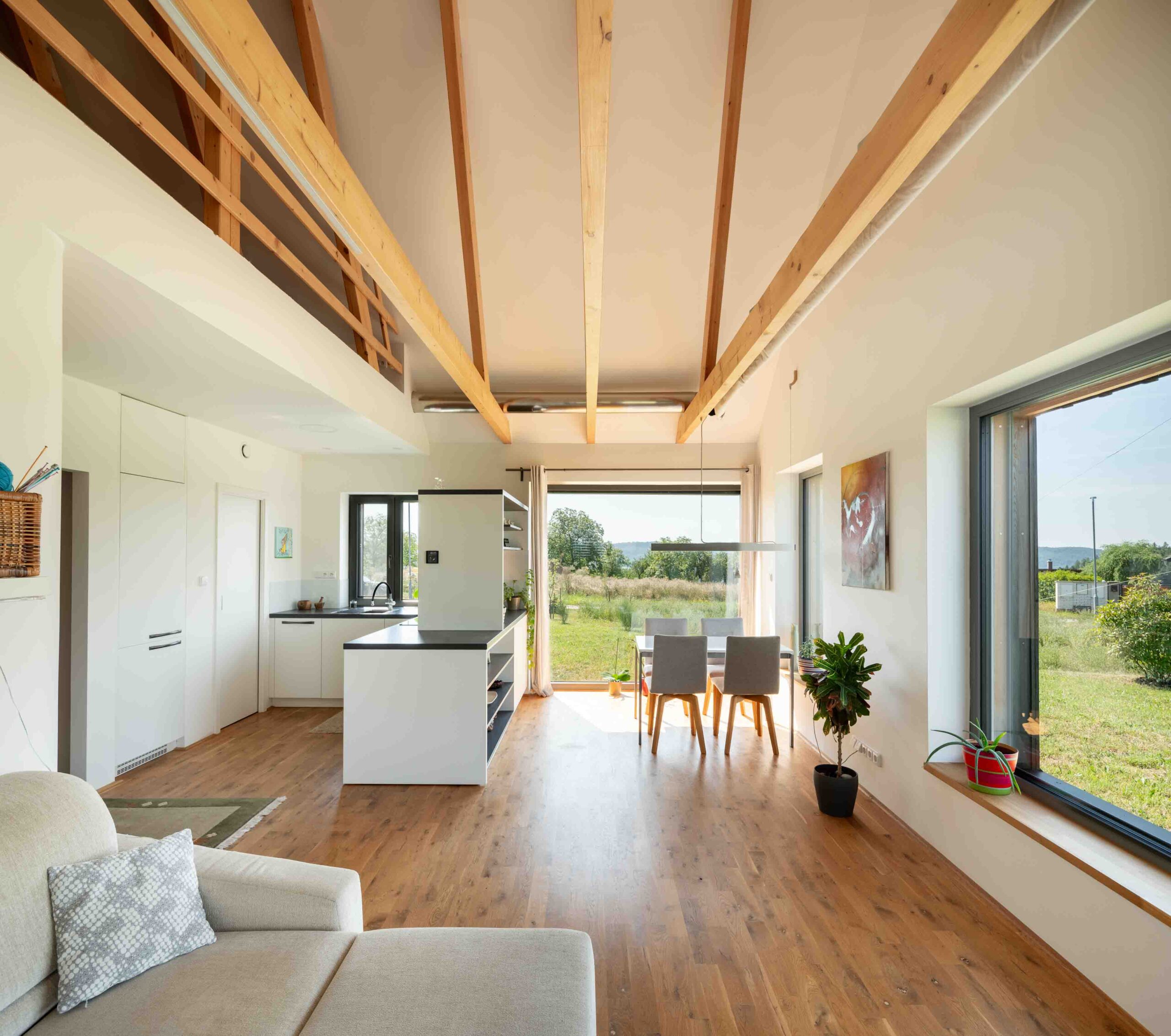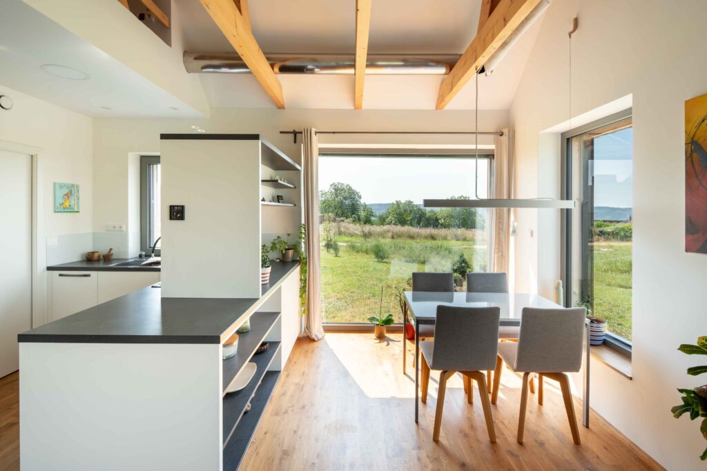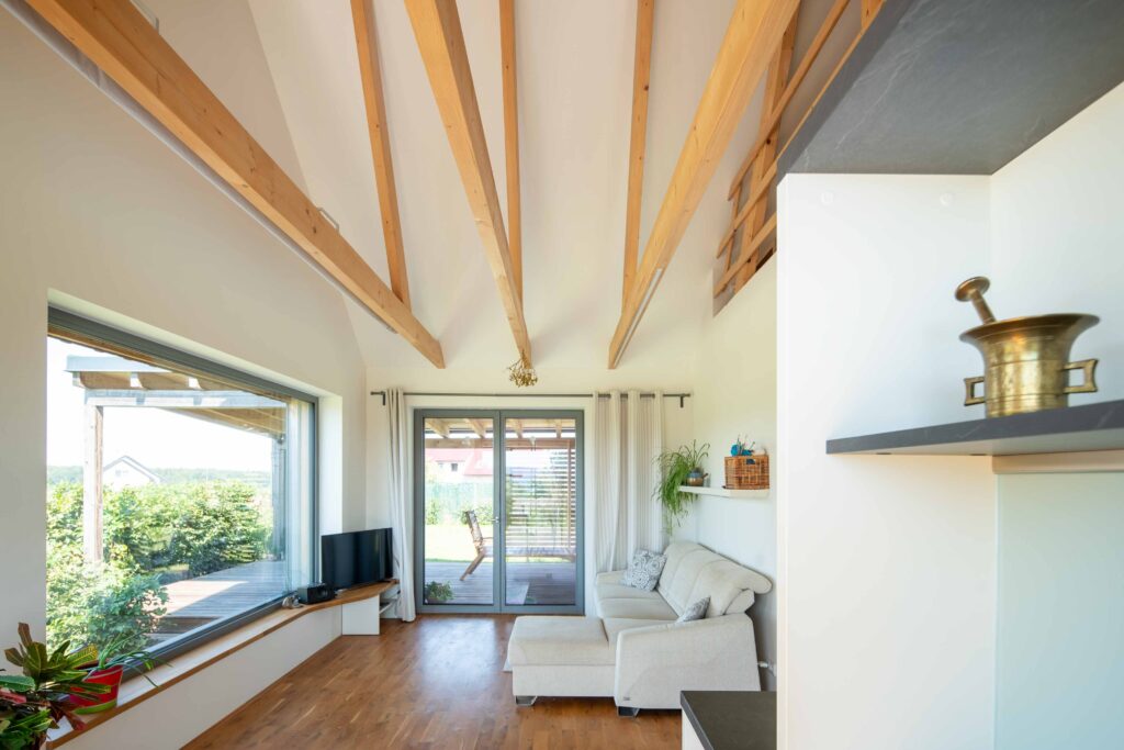 Na Křivoklátsku vyrostl domov, který dokazuje, že i na menší ploše lze vytvořit pohodlné a zdravé bydlení v souladu s přírodou. Interiér je dokonale přizpůsoben potřebám dvou lidí, s galerií připravenou pro návštěvy dětí a multifunkčním nábytkem na míru. Chytré technologie, jako je větrání s rekuperací, tepelné čerpadlo a fotovoltaika, zajišťují zdravé vnitřní prostředí a nízké náklady na provoz.