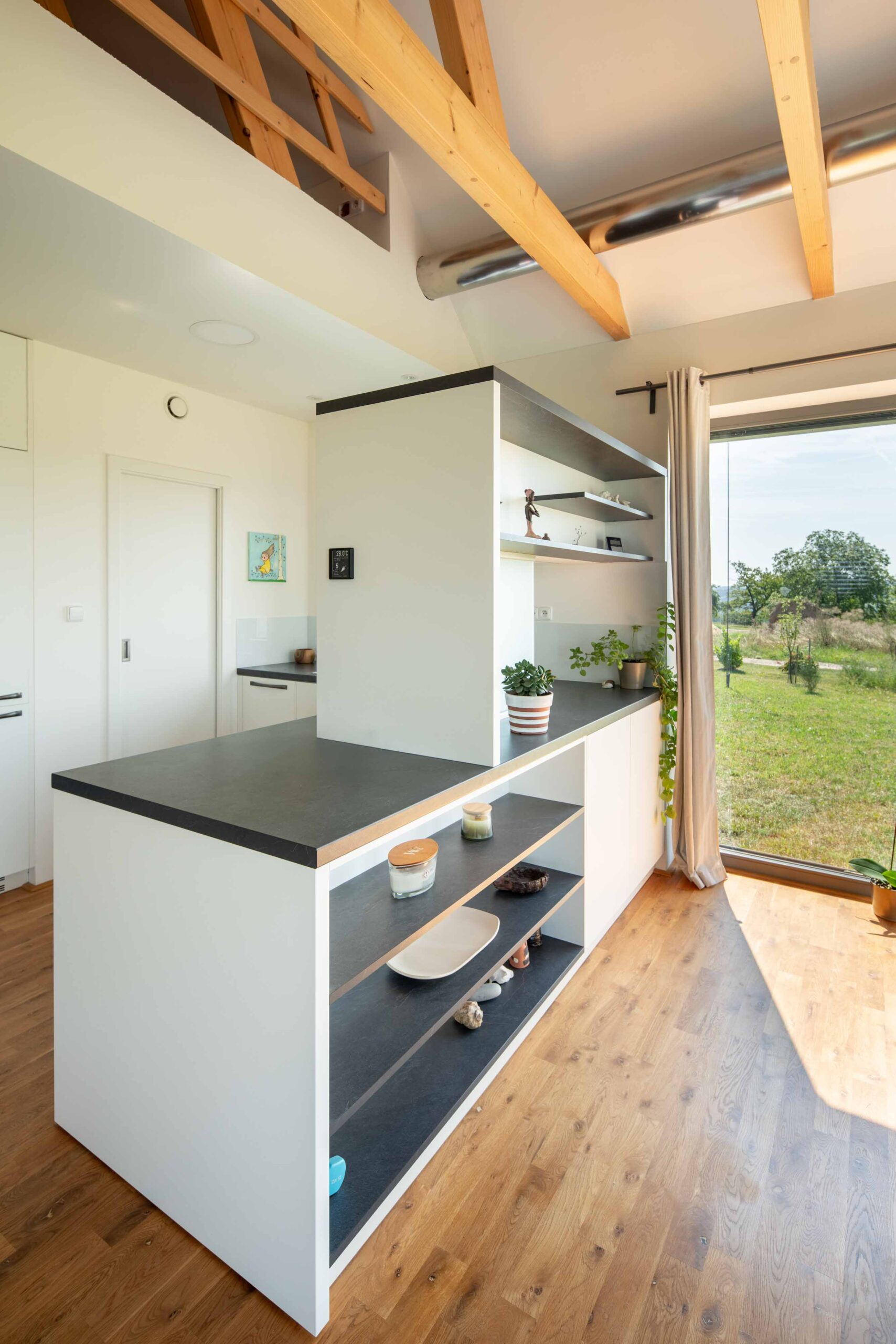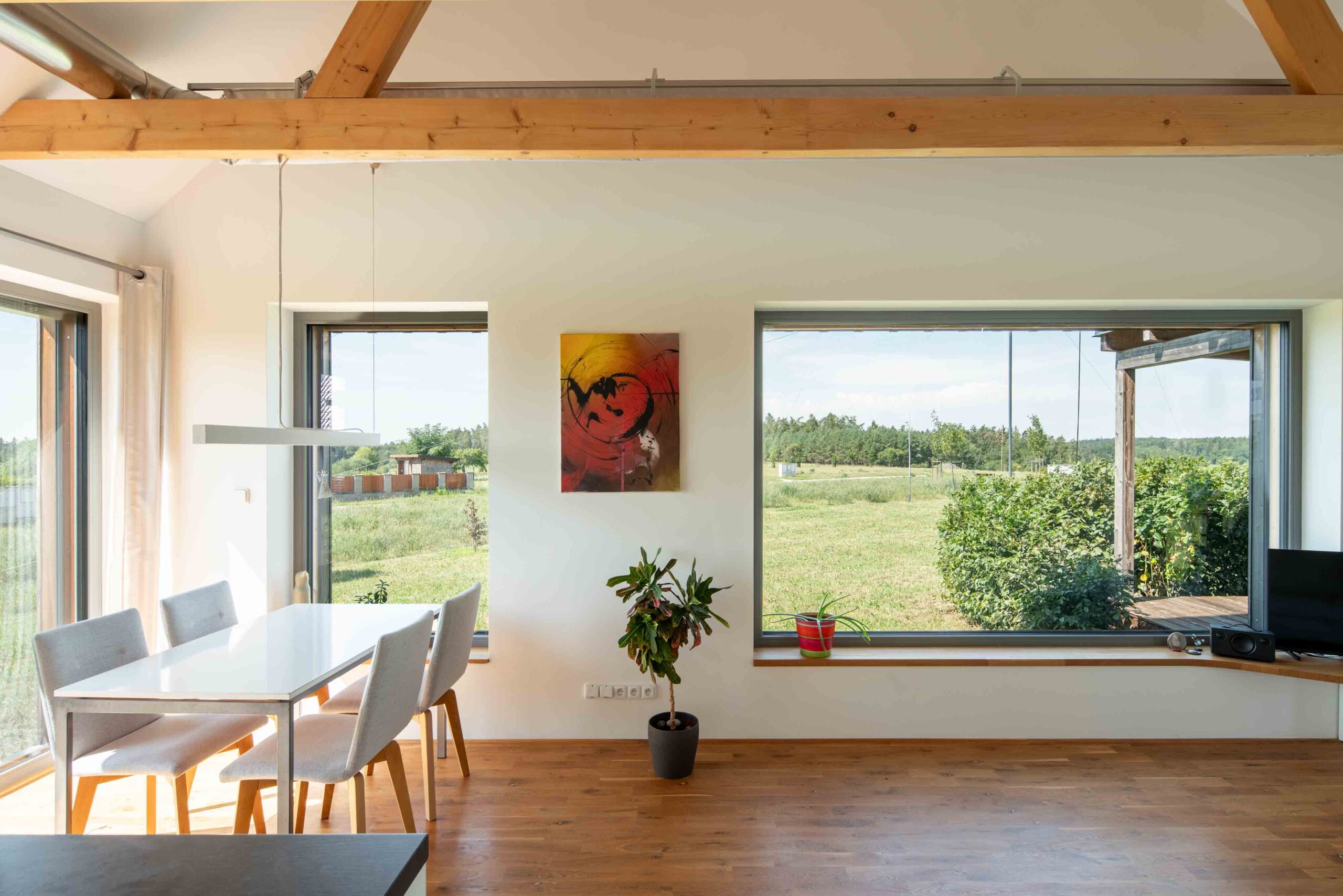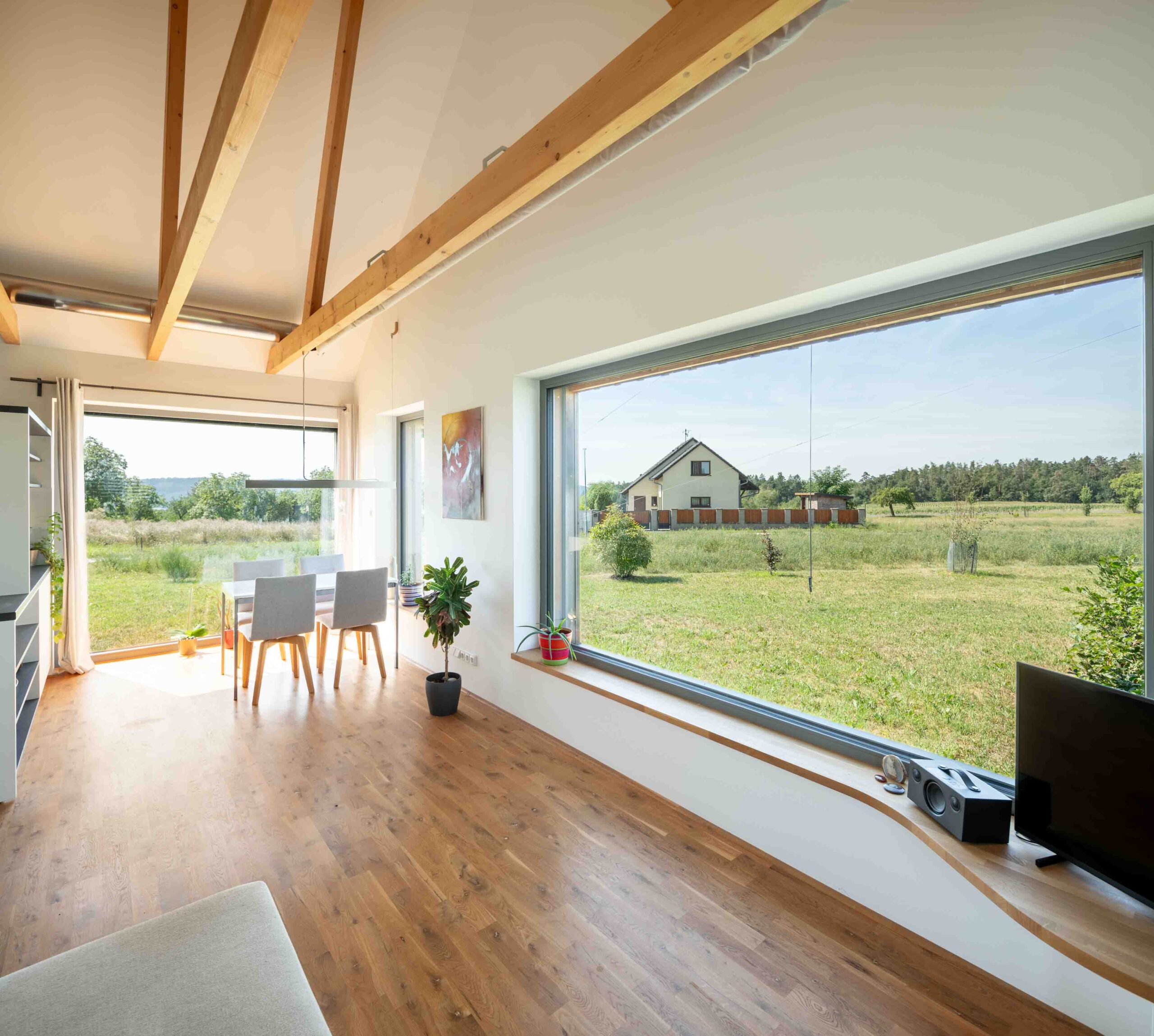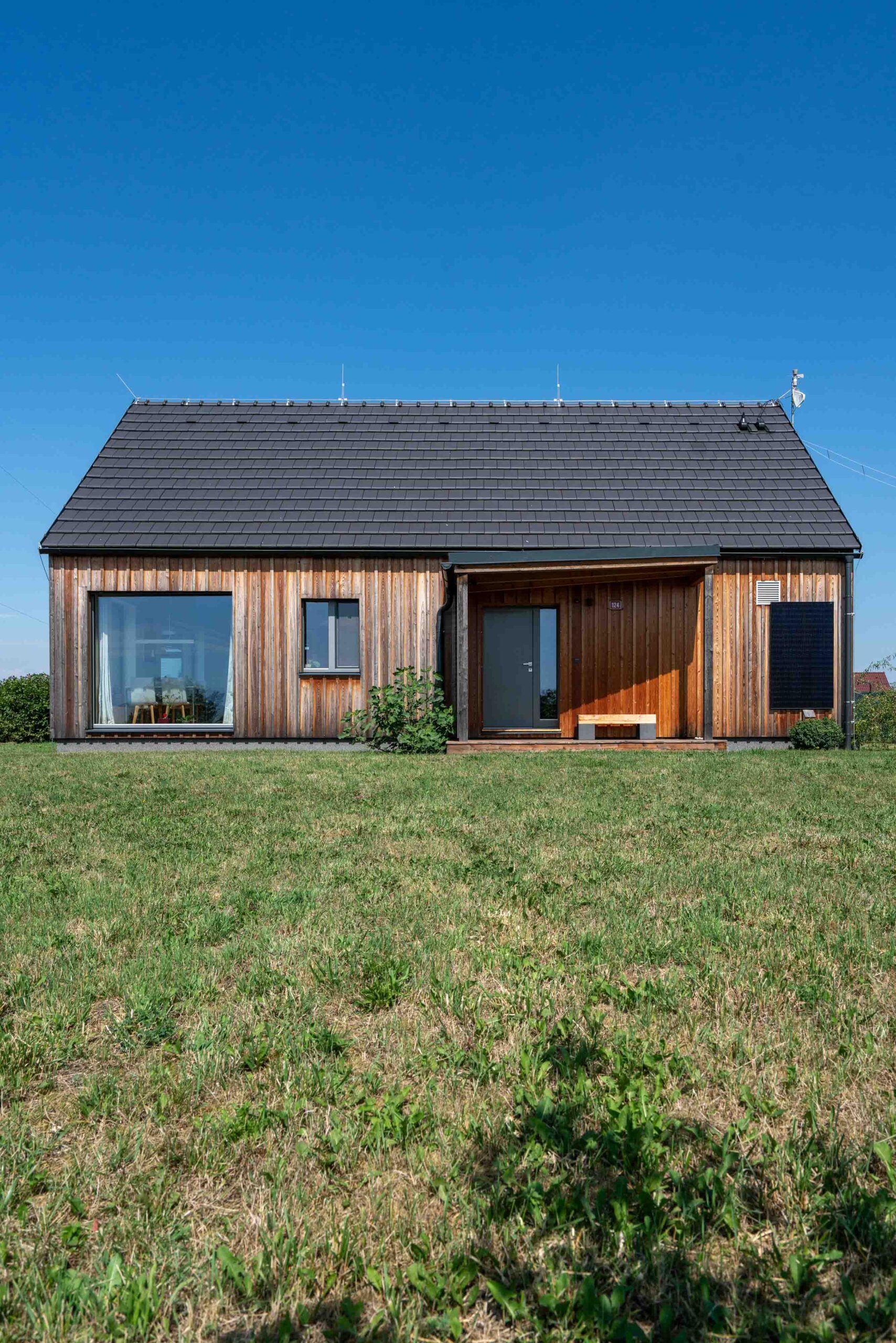 Na Křivoklátsku vyrostl domov, který dokazuje, že i na menší ploše lze vytvořit pohodlné a zdravé bydlení v souladu s přírodou. Interiér je dokonale přizpůsoben potřebám dvou lidí, s galerií připravenou pro návštěvy dětí a multifunkčním nábytkem na míru. Chytré technologie, jako je větrání s rekuperací, tepelné čerpadlo a fotovoltaika, zajišťují zdravé vnitřní prostředí a nízké náklady na provoz.